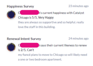 - Residents who consistently answered that they’re likely to renew, and a couple of months prior to renewal, their answer suddenly and drastically changes. That usually means something happens, and you as the Property Manager can catch that in time to hopefully reverse the situation.