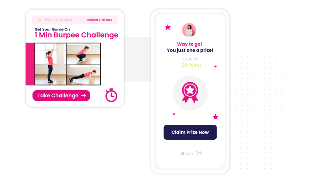 • Rewards to Boost Engagement: Residents love getting rewarded for completing classes or participating in challenges.