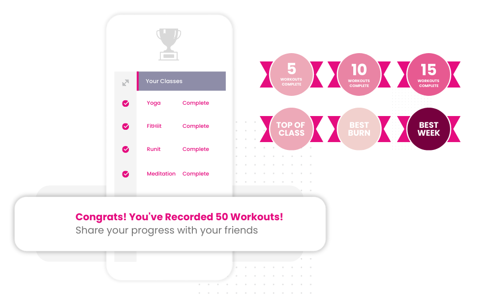 As you can see, motivation is a big part of achieving engagement through on-demand fitness, and a great way to keep residents motivated is by celebrating their wins and achievements. No matter the size. Digital badges are super helpful for keeping track of residents’ accomplishments. Small wins that pile up towards the more significant achievements should be visible from each resident’s profile.  You could give a badge for doing 5 workouts in a row or for doing the 100th workout on the app.