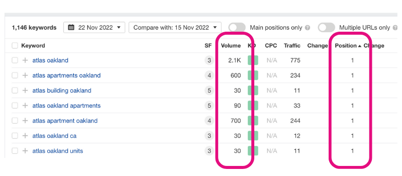 If we take a look at some of the more generic keywords (Not including Atlas), you’ll see there is room for improvement, there are numerous keyword variation examples with high volume, which Atlas Oakland isn’t performing for, so although their brand keywords are strong, there is great opportunity being missed here with relatively low competition.