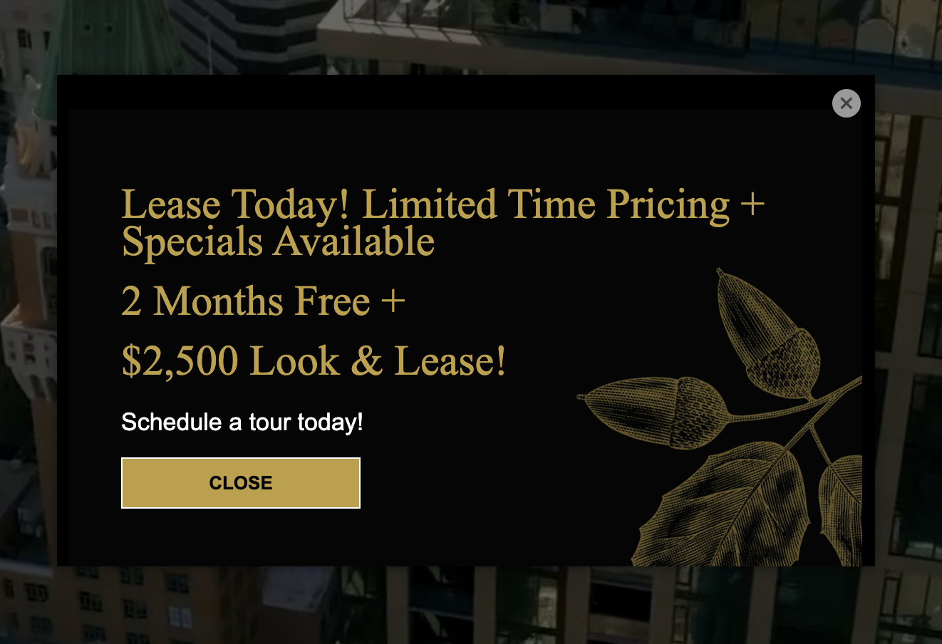 So the first thing I’m hit with when entering the Atlas Oakland site is a popup with an offer. It states the special offer and creates urgency. However, there is no clear next step here.