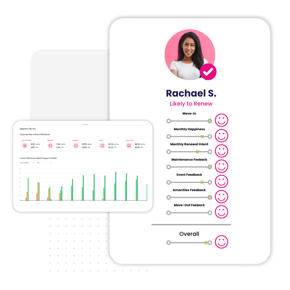 Monthly surveys may sound like a lot. But we’ve noticed that customers that follow our recommendation of monthly renewal-intent surveys have an advantage at catching problems before it’s too late. For example, you might have a resident who always answers that they’re likely to renew (even though their lease is not up for another five months). Then something happens, and four months out, they answer they’re unlikely to renew. That’s a red flag and a fair warning. It’s an excellent opportunity for you and your team because you are aware that something has changed, and you can reach out directly to understand the situation. With plenty of time to make it right.