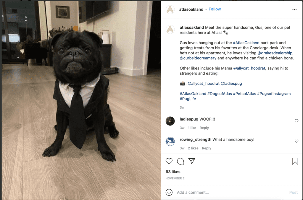 The picture below is a great example by Flamingo’s customer Atlas Oakland of relatable content that will not only make you smile, but it teaches you something about the community (they’re pet friendly!)