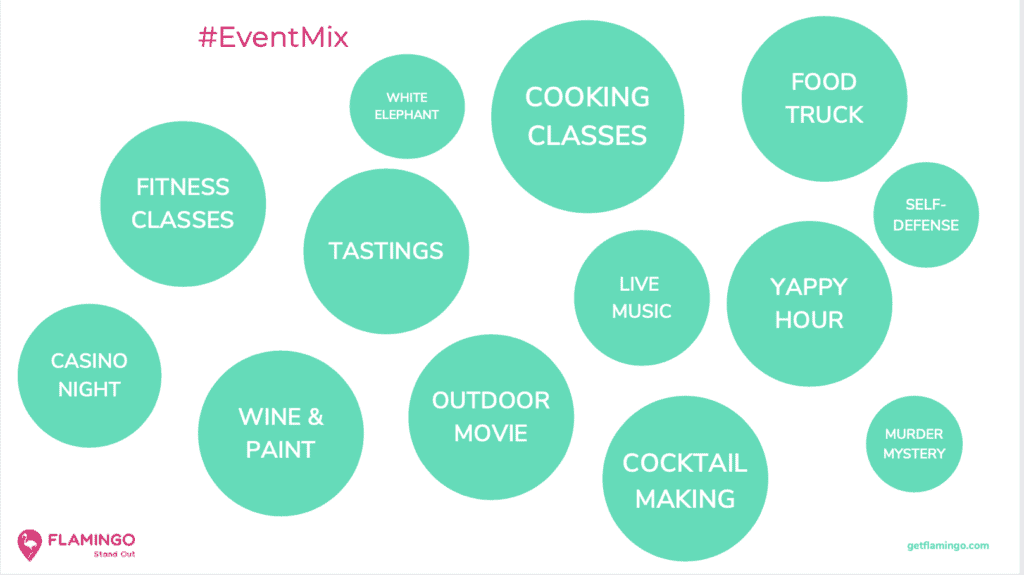 Amongst all the things that you can do to engage residents, why do resident events for apartments? Well, resident events help you build community and as we know, there’s nothing more important than building community. Community is what drives the general goals of the business you’re in. It enables retention and loyalty. A really interesting Flamingo fact is that we’ve seen that the highest retention rates among our customers are the ones that are constantly and consistently doing events. Events give your residents the opportunity to connect with neighbors and with the management team. They really do create engagement all around.