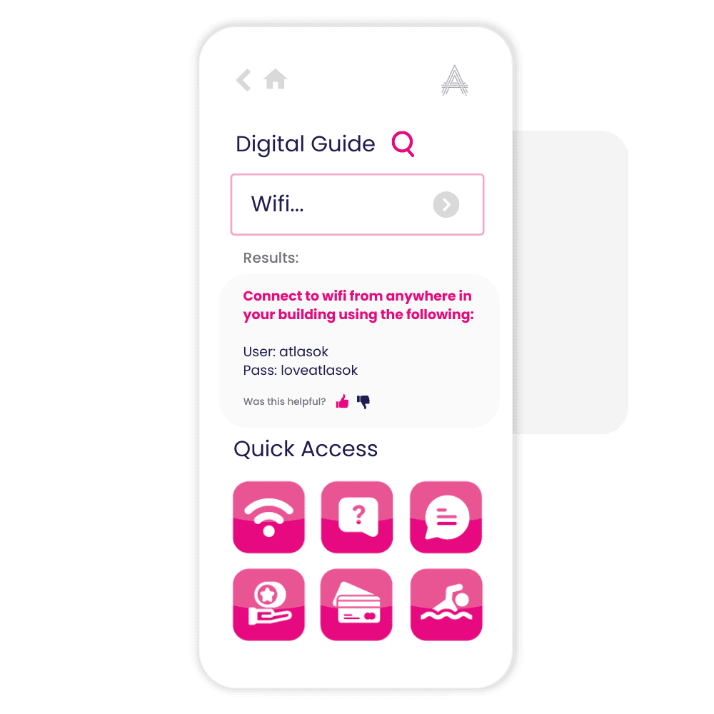 A fully digitalized resident guide with Google-like search capabilities that also let’s your team which terms are the most searched for. Site teams no longer have to answer the same questions over and over.